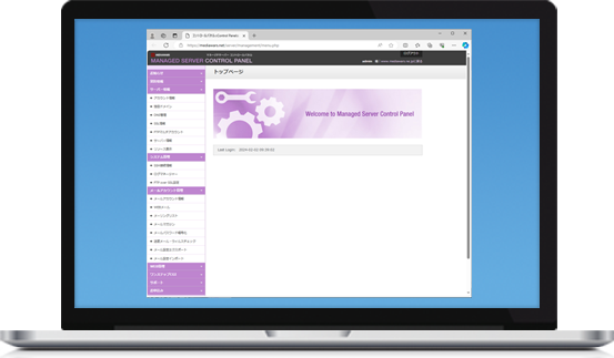 | 管理画面 | 自社開発「マネージドサーバーコントロールパネル」。 |