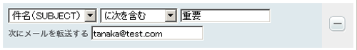 ●件名に「重要」が含まれる場合「tanaka@test.com」へ転送する