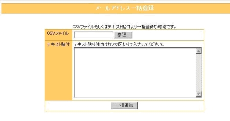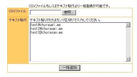 メールアドレス1件の登録であってもこちらの画面より行います。