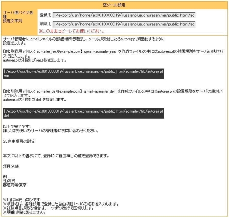メール送信をしてもらうだけで、簡単にメールマガジンからの登録・解除を行うための機能です。詳しい内容がおわかりになるユーザーの方は特殊な処理も可能ですのでご利用ください。設定方法は設定欄下部に詳細な説明がございます。