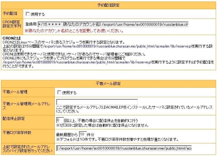 ちゅら海レンタルサーバーではcron機能をサポートしていますので「使用する」にチェックを入れると使用可能となります。送信時間の間隔についてはくれぐれもお間違いのないようにお願いします。(規定を超える送信を行うと、アカウント停止等の対象になります)