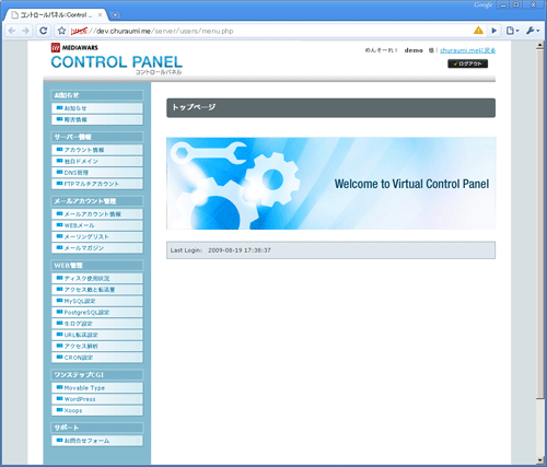 コントロールパネル へログインし、ページ左側の管理メニューの中から「WordPress」をクリックします。