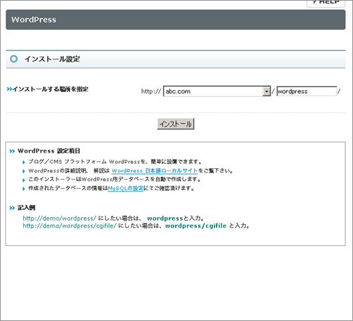 ・http://ドメイン名/homepage/blog/にしたい場合は「homepage/blog」と入力します。