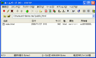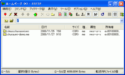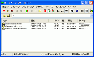 サーバーに接続すると、ホームディレクトリ上に登録頂いた