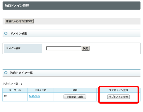 「サブドメイン管理」をクリックします。