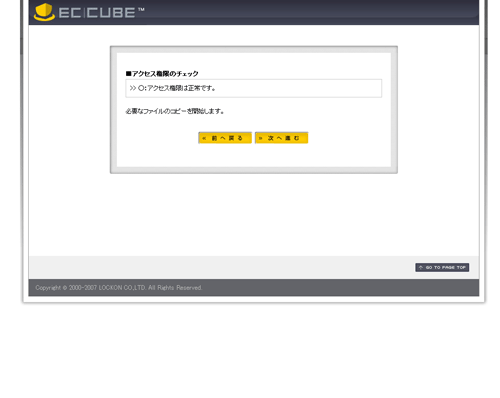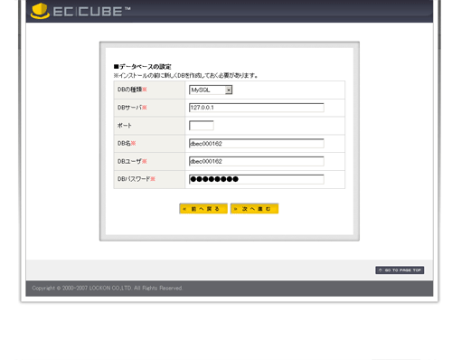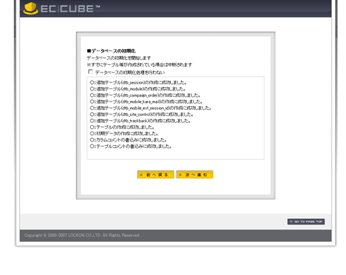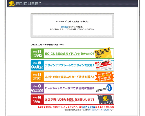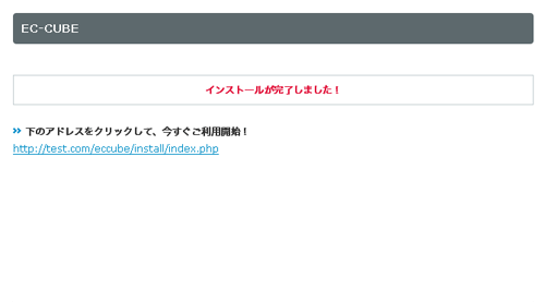 インストールが正常に完了すると、EC-CUBE設定画面のアドレス表示されますので、クリックしてに移動します。