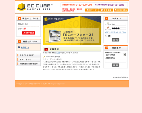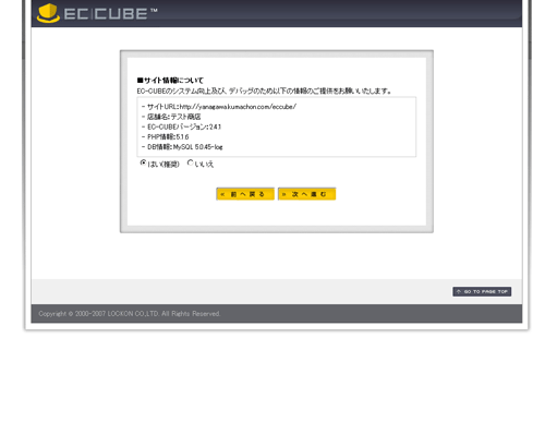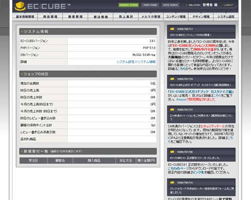 管理画面上部のヘッダーにある「SITE CHECK」ボタン をクリックして、下記のようなページが表示されたら、 EC-CUBEの設置は完了です。