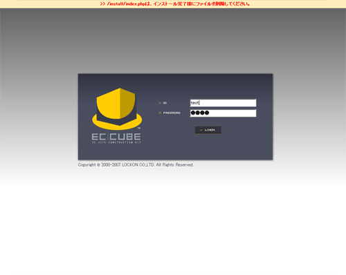 「>> /install/index.phpは、インストール完了後にファイルを削除してください。」