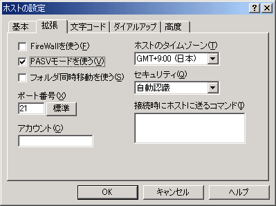 | ローカルの初期設定フォルダ(L)… | 任意の設定です、お客様が作成されたホームページデータのあるディレクトリを指定してください。 |