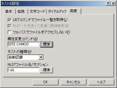 高度タブをクリックして[LISTコマンドでファイル一覧を取得(L)]にチェックをいれてください。 入力が終わりましたら[OK]ボタンをクリックしてください。