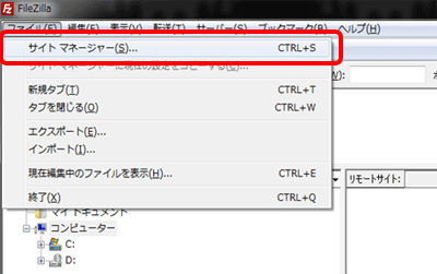 「ファイル(F)」から「サイトマネージャ...(S)」を開きます。