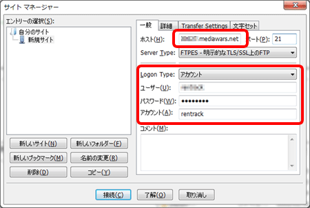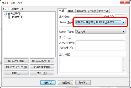 FTP over SSL 「FileZilla」の設定
