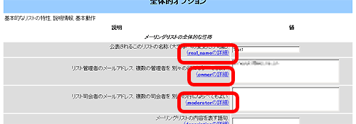| 管理者メールアドレス | :メーリングリスト管理者のメールアドレスを入力します |