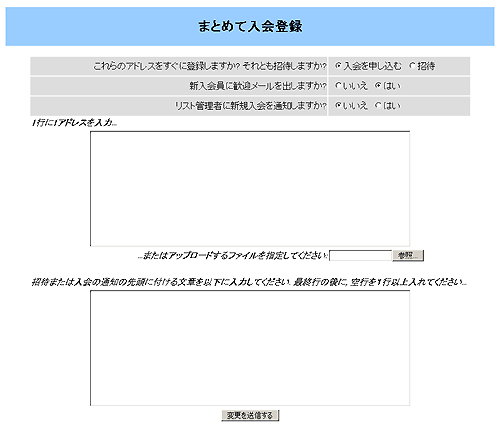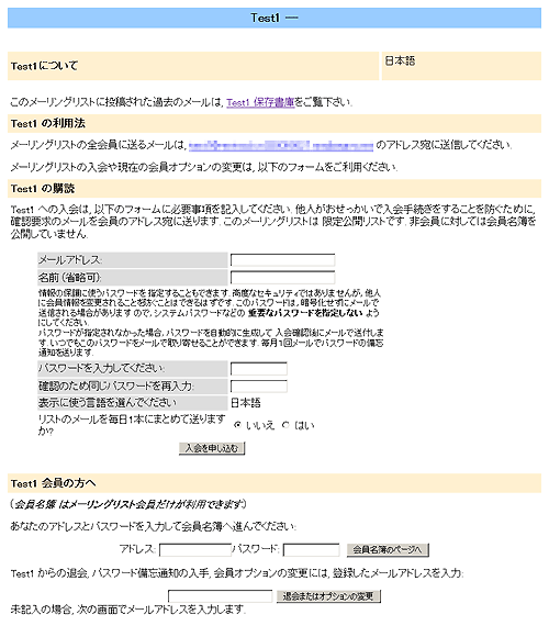 (http://お客様のドメイン名:8000/mailman/listinfo/<ML名>)