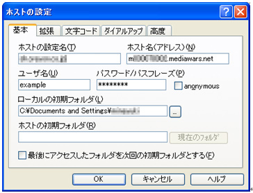 設定に必要な情報は[バーチャルコントロールパネル][FTPマルチアカウント]よりご確認ください。
