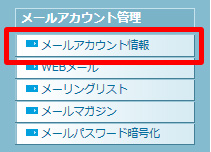 コントロールパネルにログインし、「メールアカウント情報」メニューをクリックします。