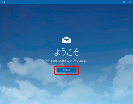 ※この画面はメールアプリを初回起動時に表示されます。2回目以降は、Windows 10 メールアプリの受信トレイが表示されます。